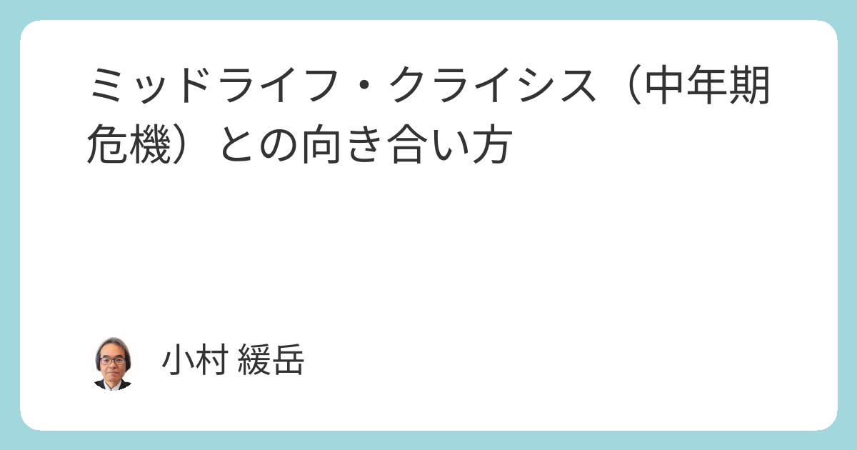 ある意味、これまでの人生を問い直し、来るべき老年期に向かっての総括をするための、人生の転換点ともいえる時期でもあります。
